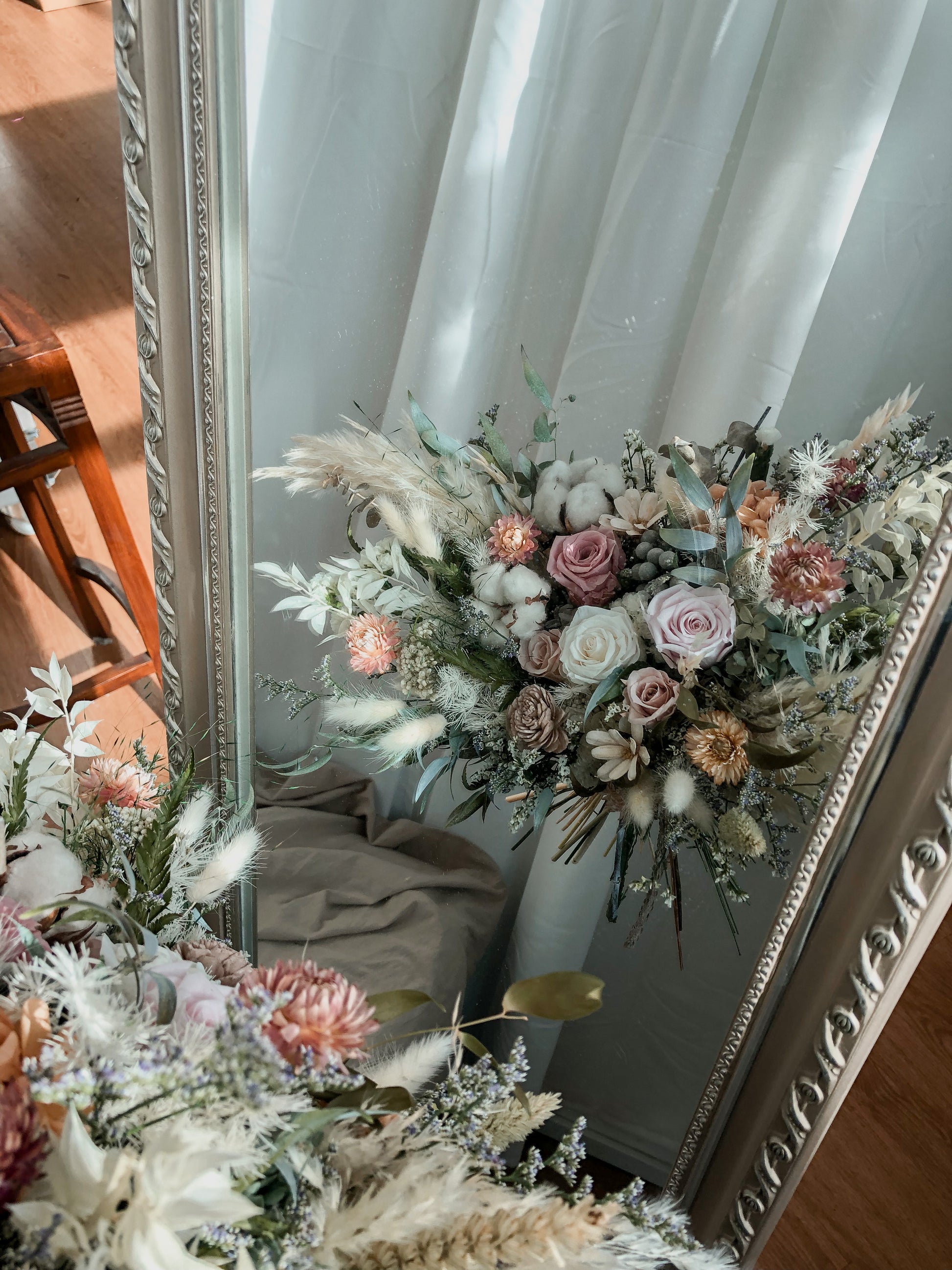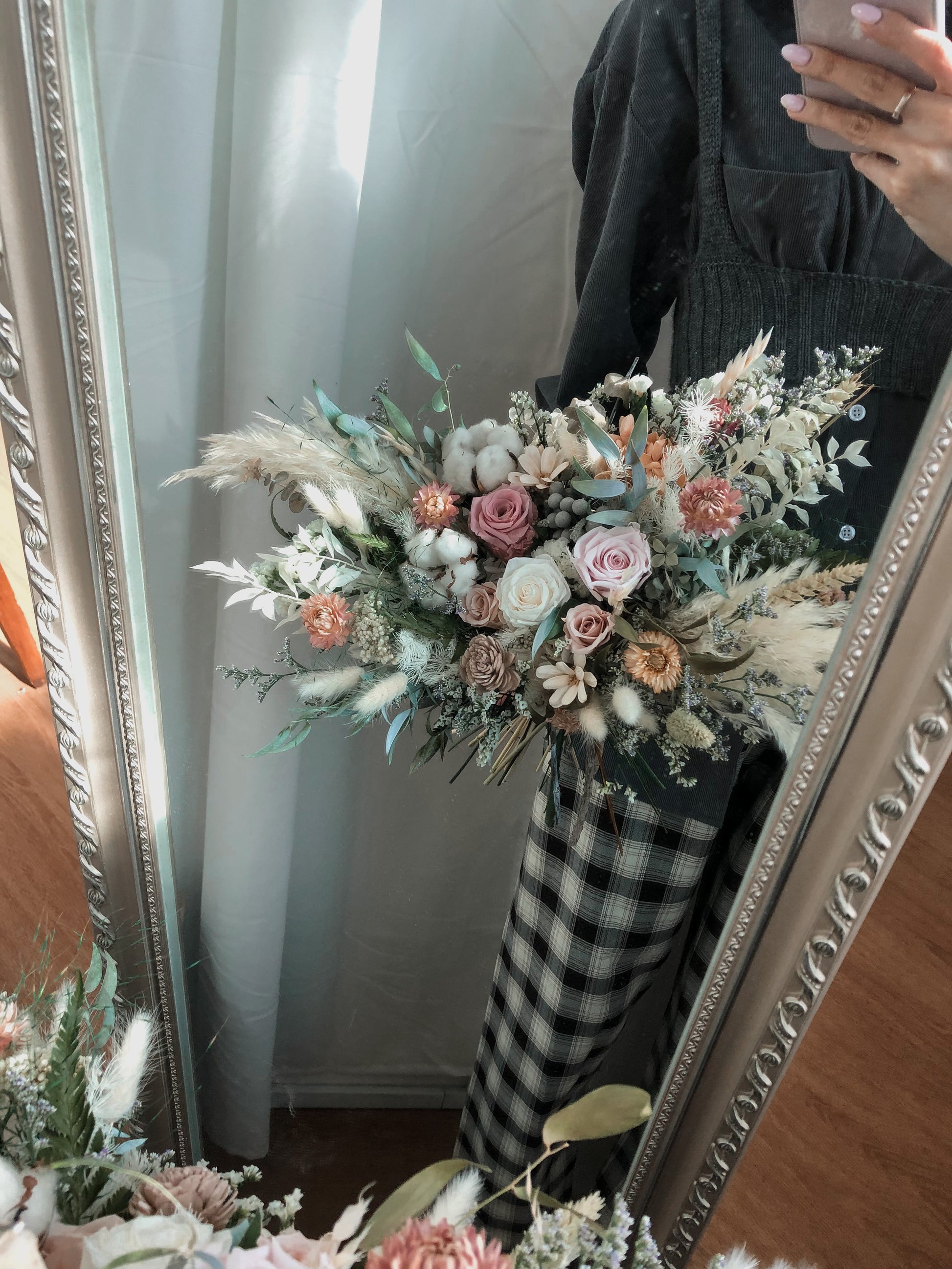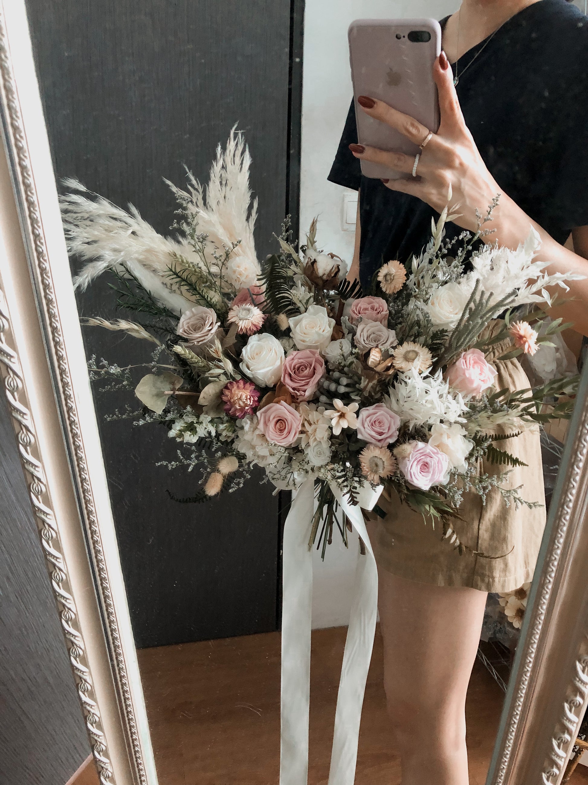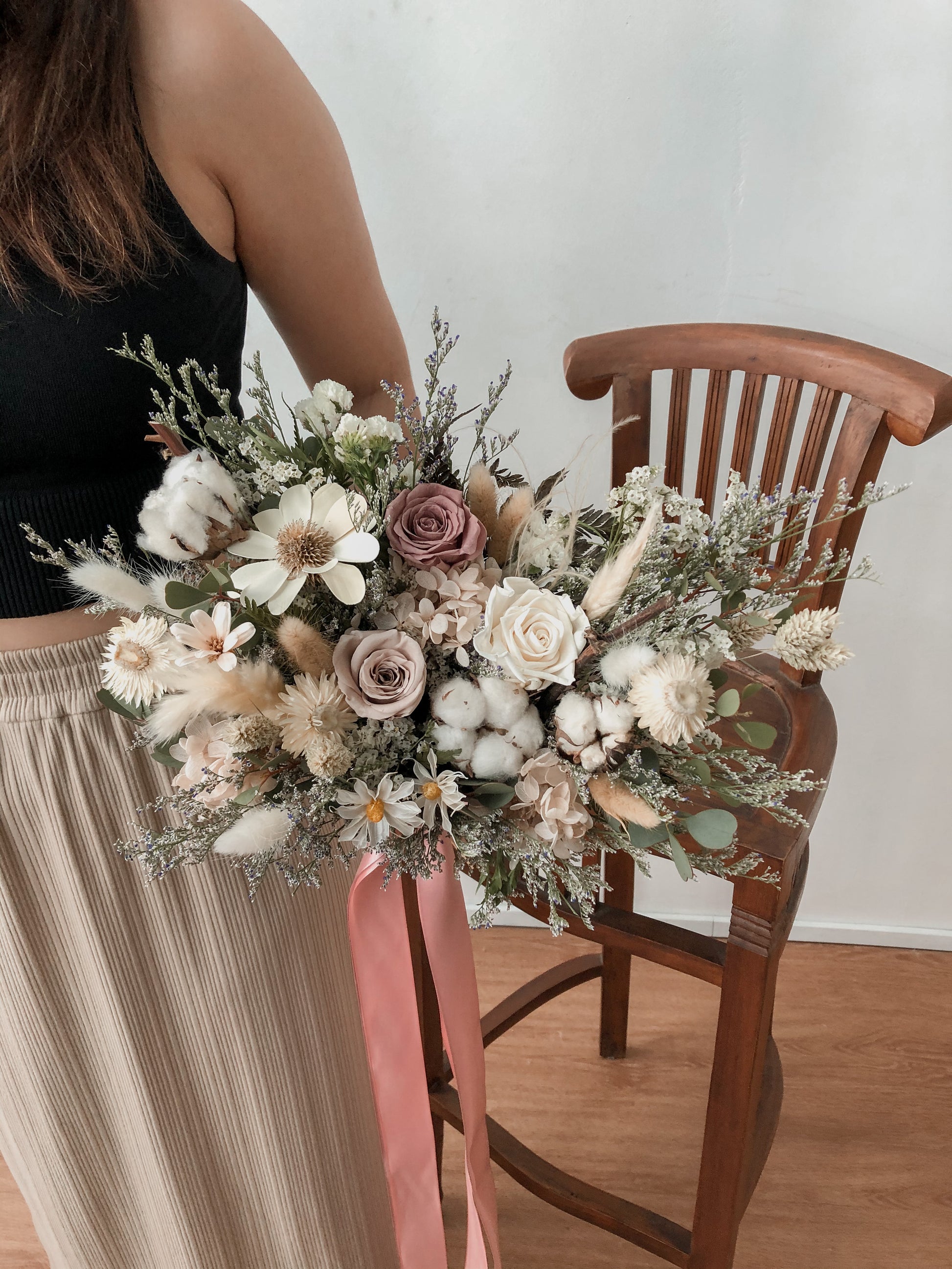 Horizontal Freestyle Bridal Bouquet (Preserved Flowers)