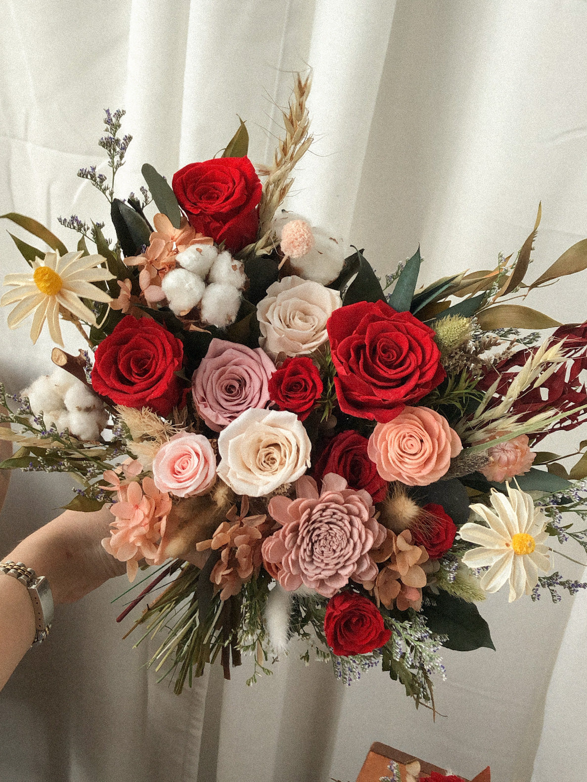Horizontal Freestyle Bridal Bouquet (Preserved Flowers)