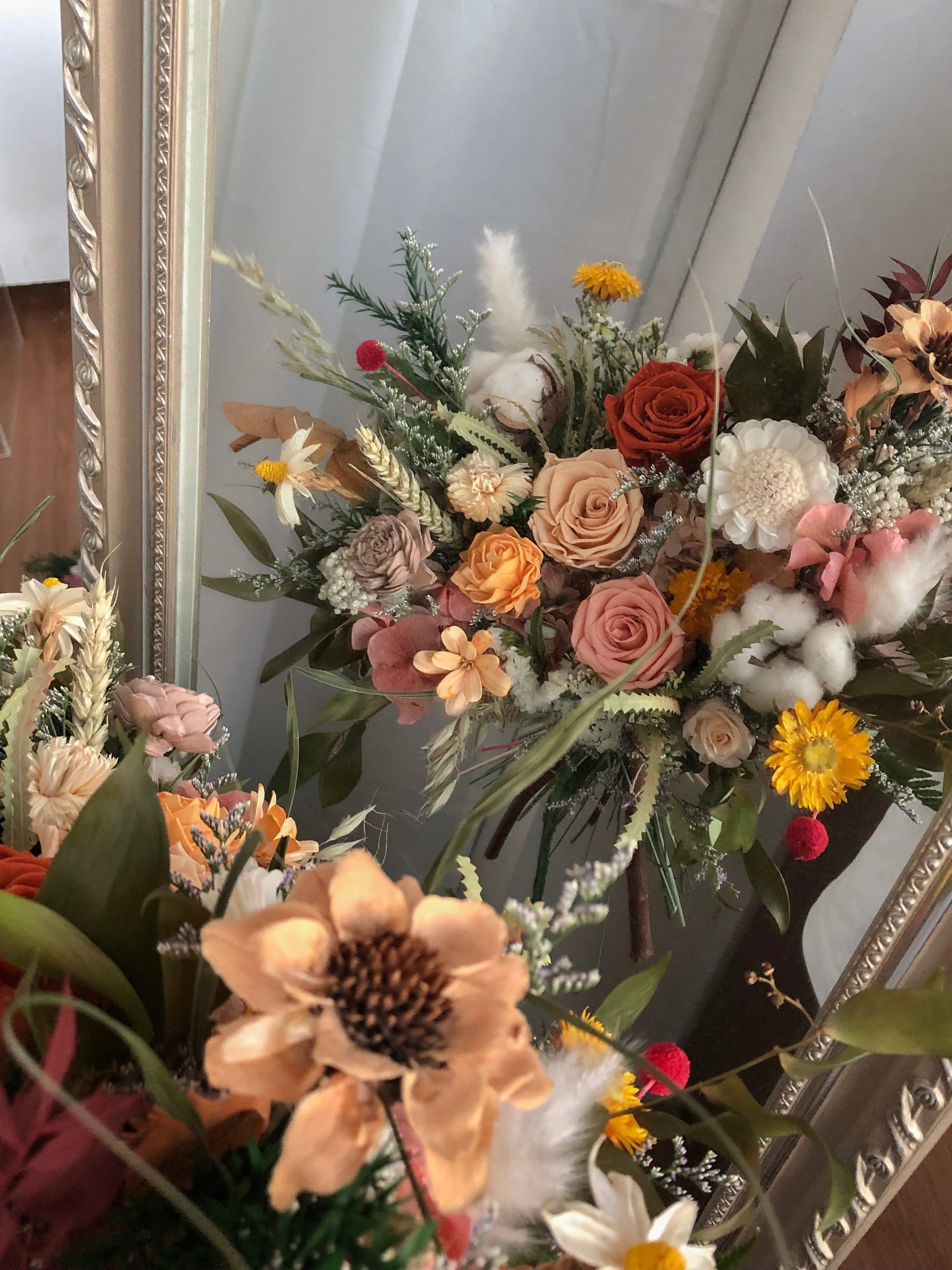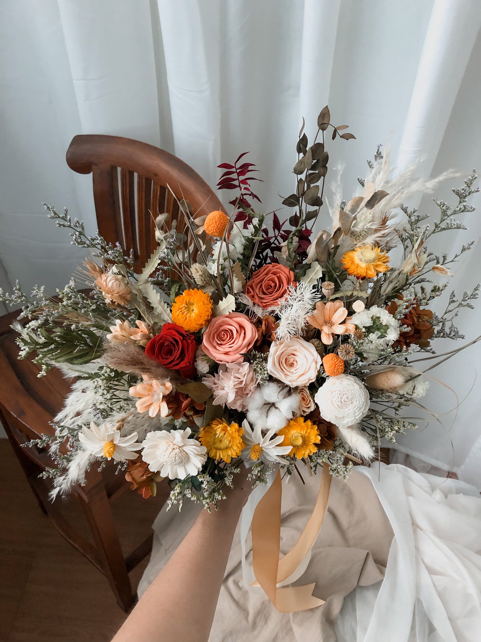 The perfect option for couples who want to create a keepsake that will forever remind them of their magical day. Remember, your love story is one-of-a-kind, and your bridal flowers should be too. Let's make your special day unforgettable, with blooms that capture the essence of your unique romance. Get ready to say "I do" to a bridal flower bouquet that is exclusively yours.