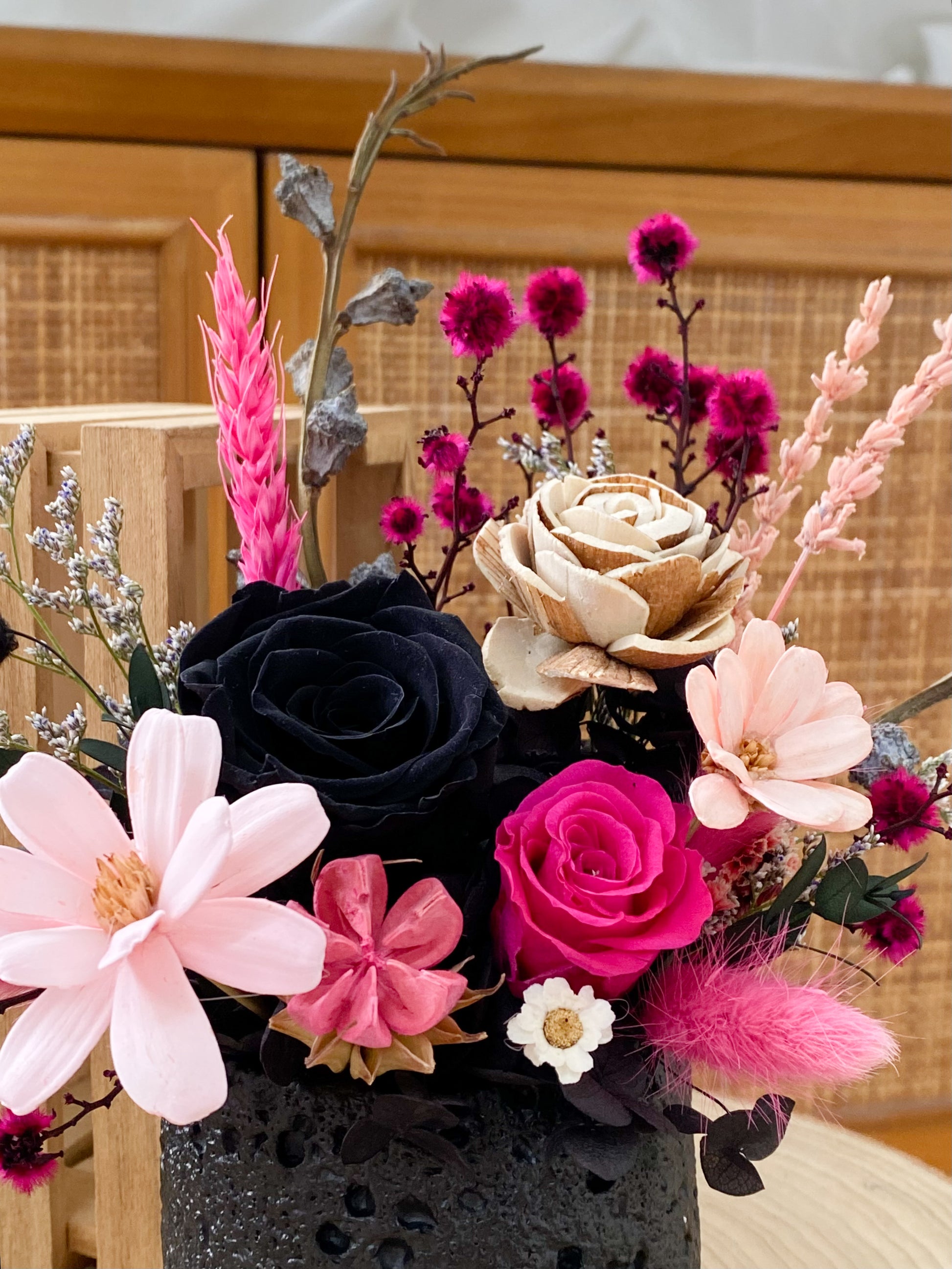 *Please note that while our flowers are designed to maintain their beauty indefinitely, they may naturally fade over an extended period of time. Nonetheless, their lasting charm will continue to captivate your heart and remind you of the everlasting nature of love. Pots are handmade and might have little imperfections!