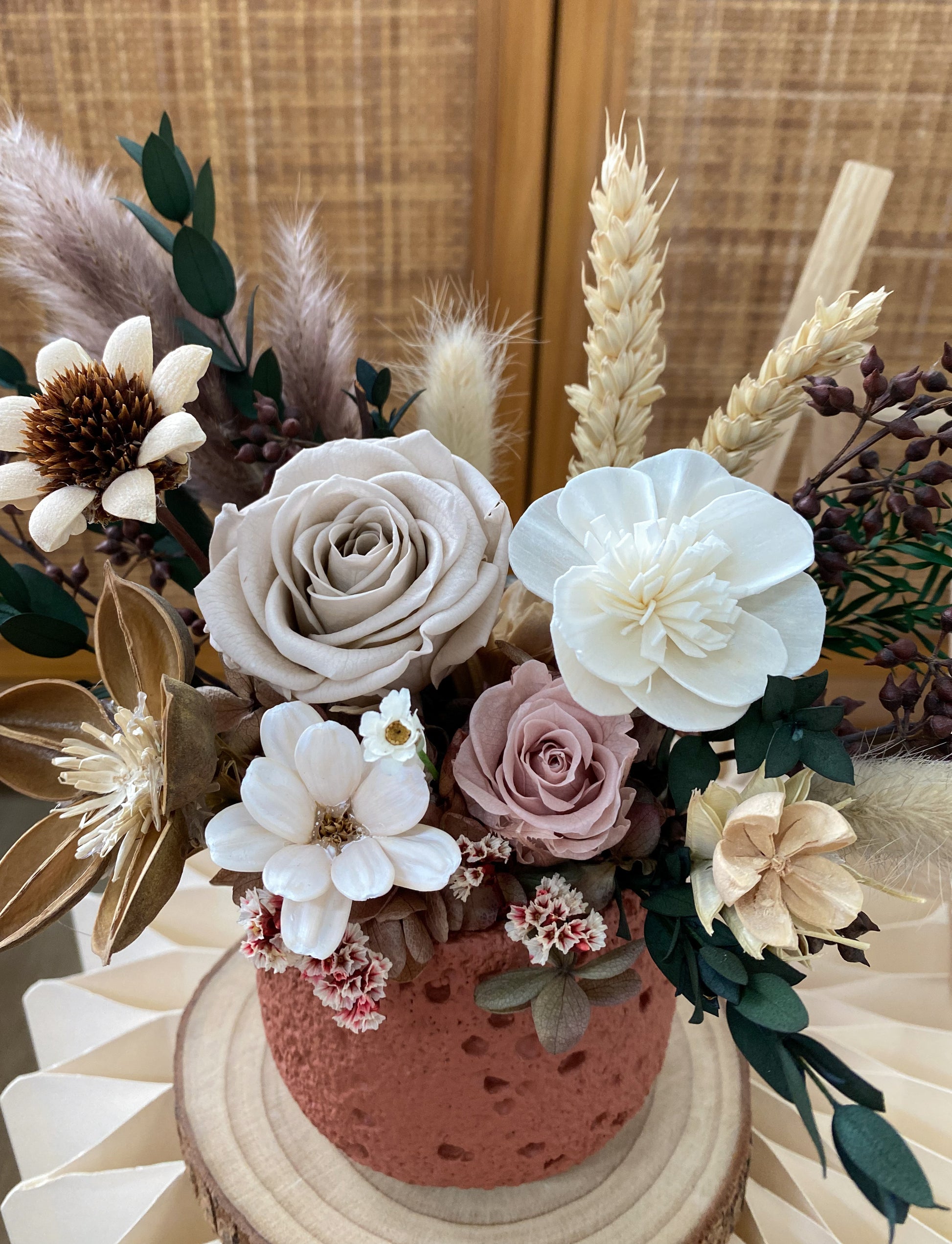 *Please note that while our flowers are designed to maintain their beauty indefinitely, they may naturally fade over an extended period of time. Nonetheless, their lasting charm will continue to captivate your heart and remind you of the everlasting nature of love. Pots are handmade and might have little imperfections!