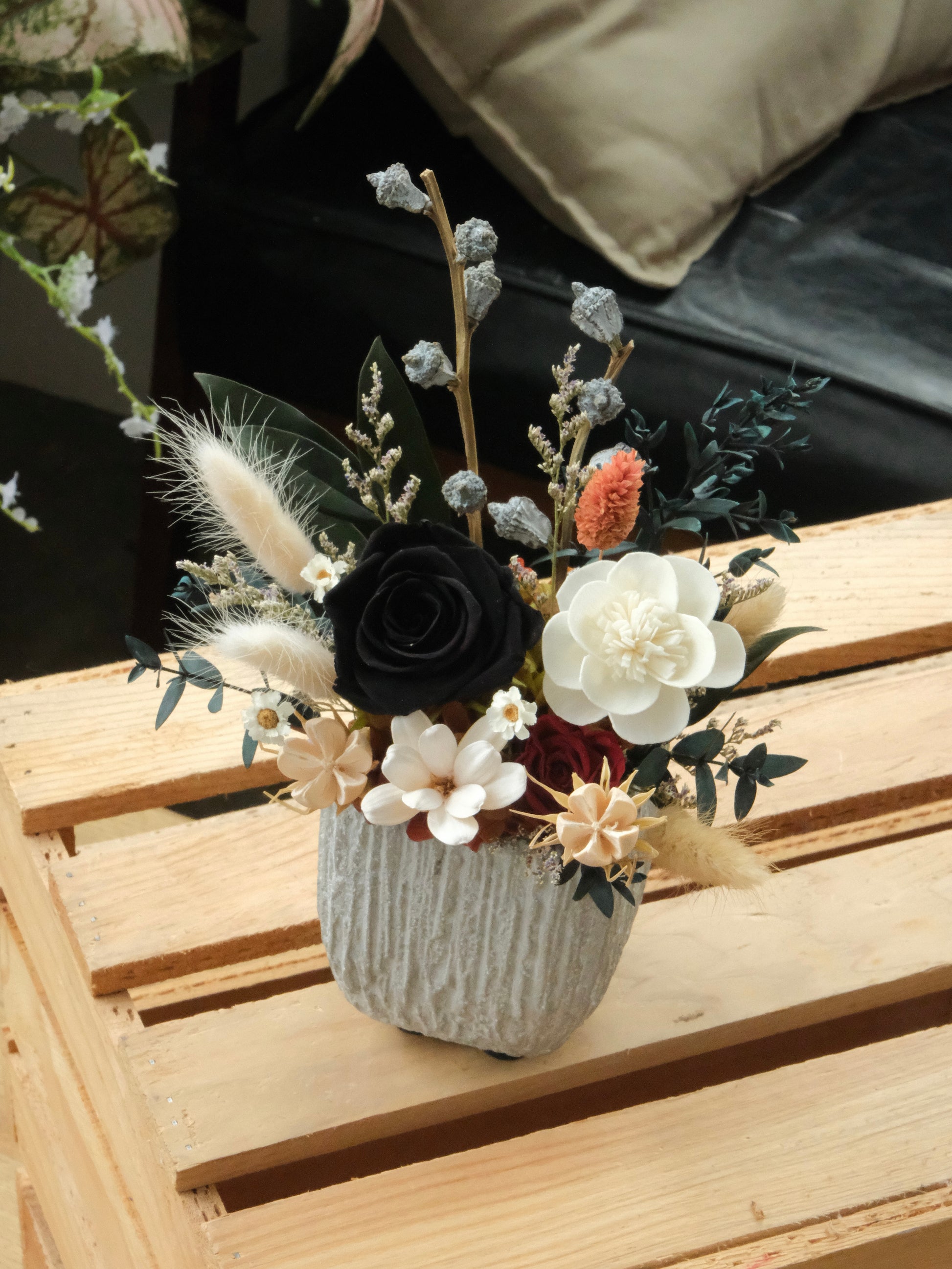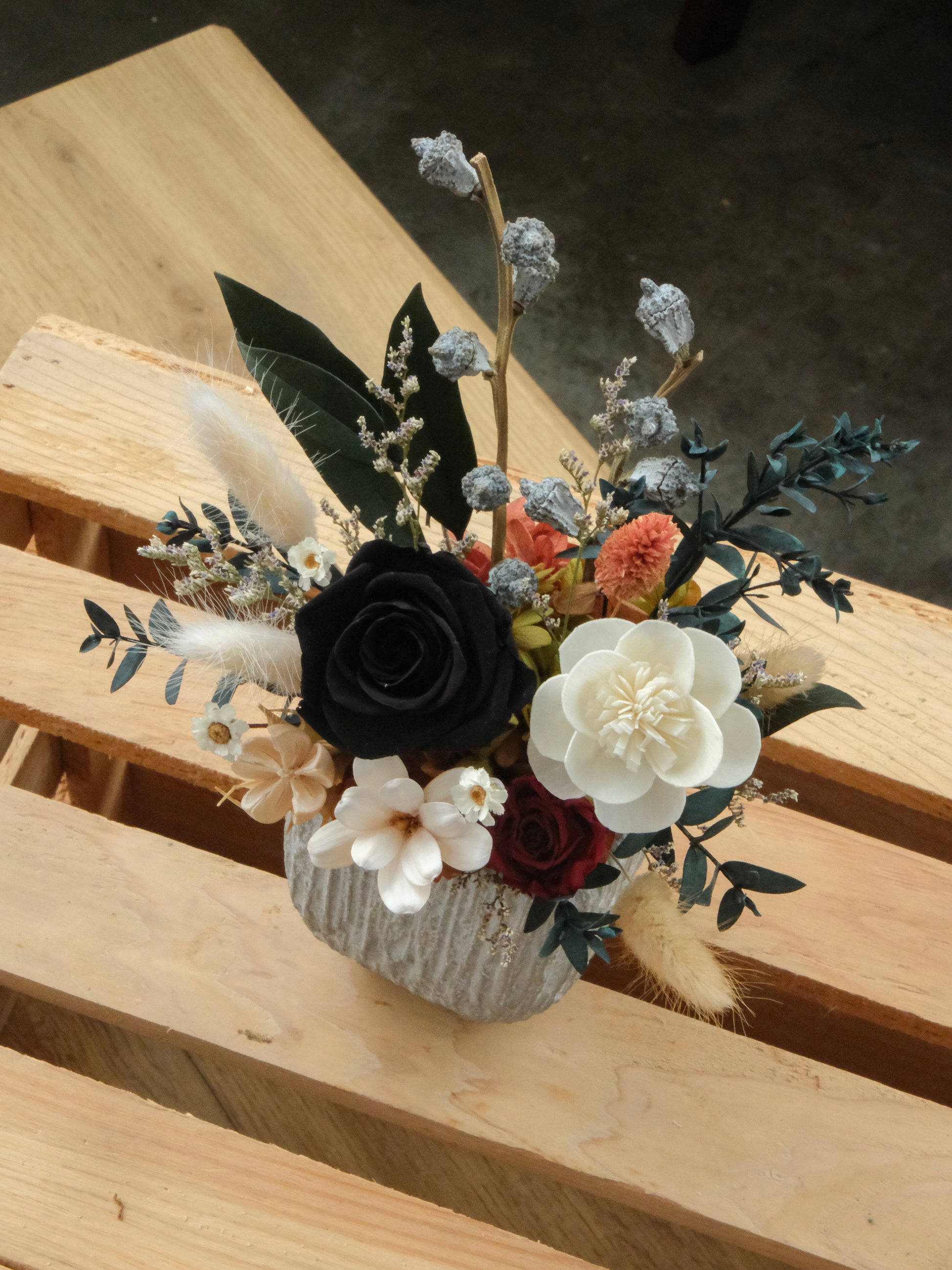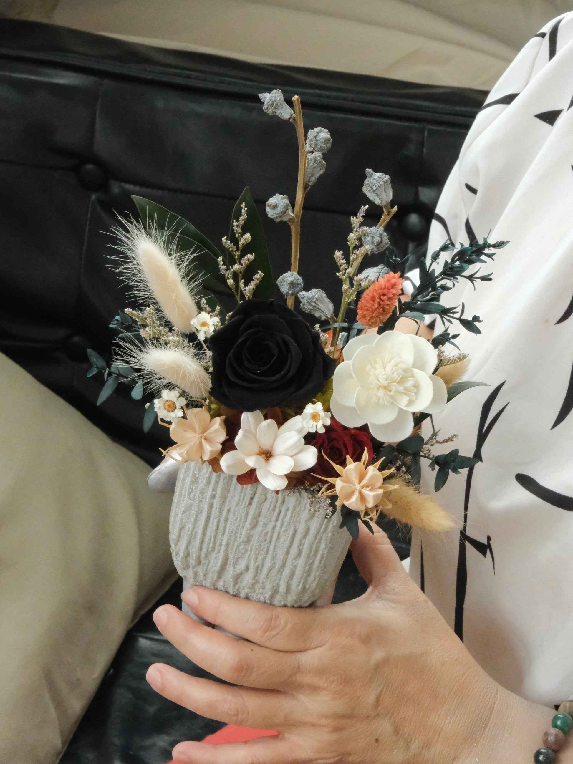 *Please note that while our flowers are designed to maintain their beauty indefinitely, they may naturally fade over an extended period of time. Nonetheless, their lasting charm will continue to captivate your heart and remind you of the everlasting nature of love. Pots are handmade and might have little imperfections!