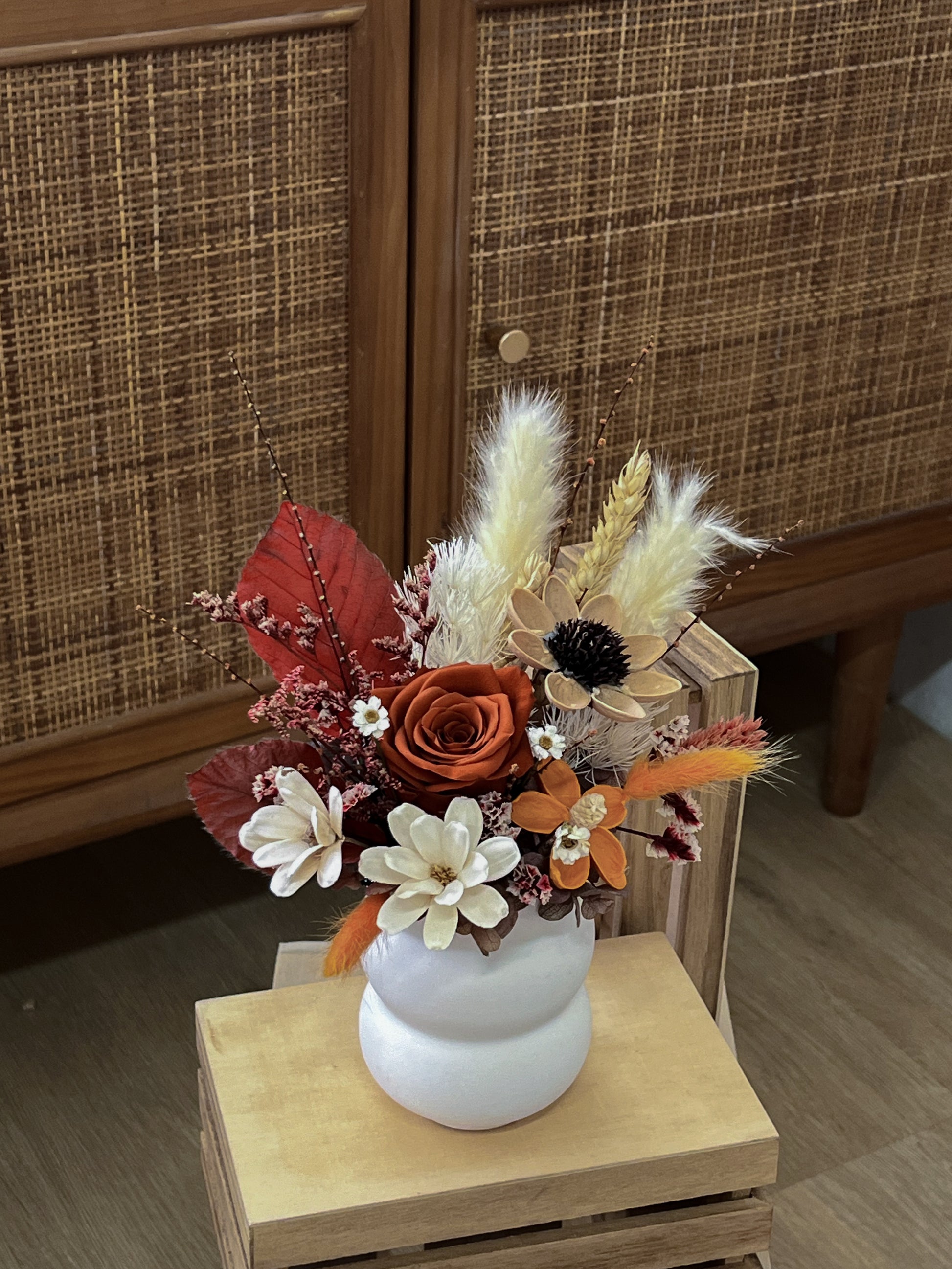 *Please note that while our flowers are designed to maintain their beauty indefinitely, they may naturally fade over an extended period of time. Nonetheless, their lasting charm will continue to captivate your heart and remind you of the everlasting nature of love. Pots are handmade and might have little imperfections!